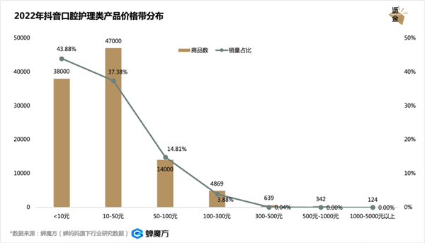 口腔护理属于典型的刚需型快消品,因此产品溢价普遍较低,这也体现在抖音的大盘中。