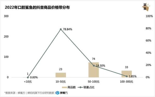 2022年口腔鲨鱼的抖音商品价格带分布